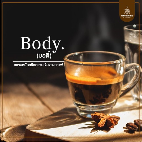คือ น้ำหนักหรือความเข้มของกาแฟ เมื่อจิบกาแฟเราจะรู้สึกถึงความมีเนื้อมีหนังของกาแฟ