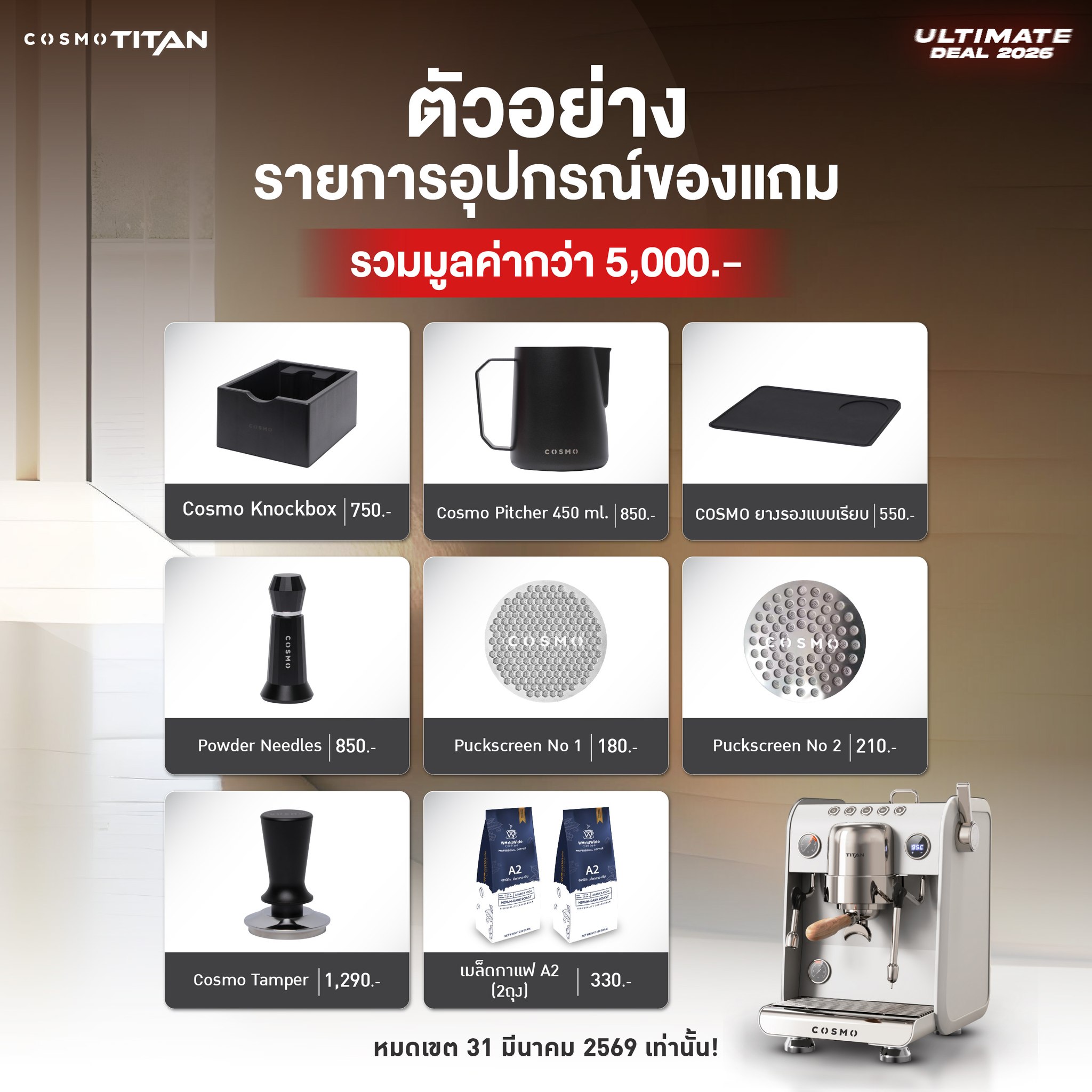 โปรโมชั่นชุดเครื่องชงกาแฟ Cosmo Titan Matt White 1 Group